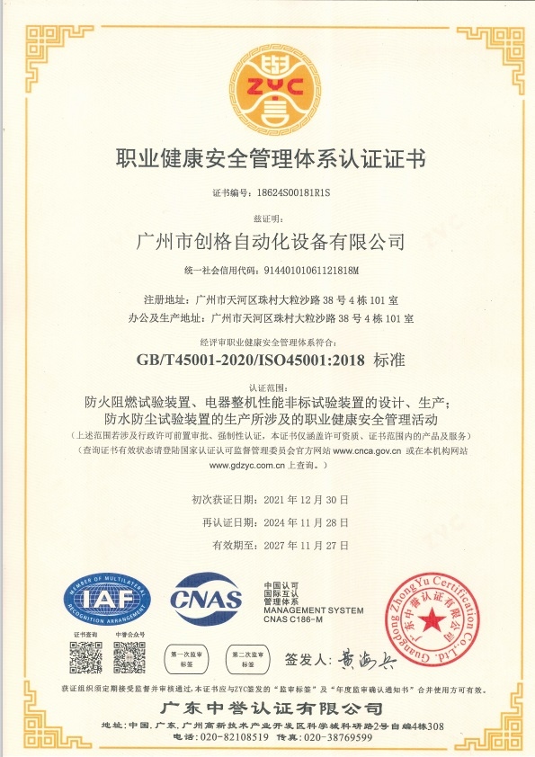 您的位置:主页  > 公司资质  > 职业健康安全管理体系认证证书(ISO45001)