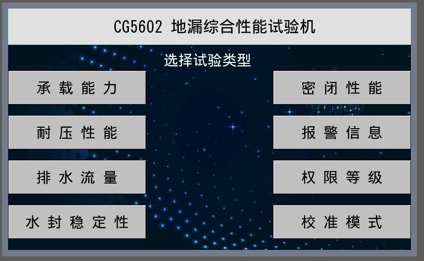 11、测试模块:9个模块可根据用户实际使用需求搭配:地漏承载能力试验装置(模块),地漏耐压性能试验装置(模块),GB27710单通道地漏排水流量/自清能力试验装置(模块),CJ/T单通道地漏排水流量/自清能力试验装置(模块),多通道地漏排水流量/自清能力试验装置(模块),地漏冷热循环试验装置(模块),水封稳定性试验装置(模块),地漏寿命试验装置(模块),地漏密闭性能试验装置(模块);