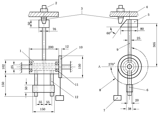 4.锤头尺寸:80 mm×76 mm×50mm(长宽高),打击面与水平60°;