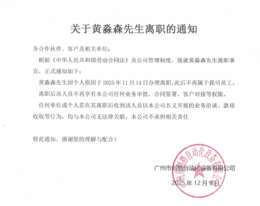 您的位置:主页  > 新闻中心  > 关于黄淼森先生离职的通知